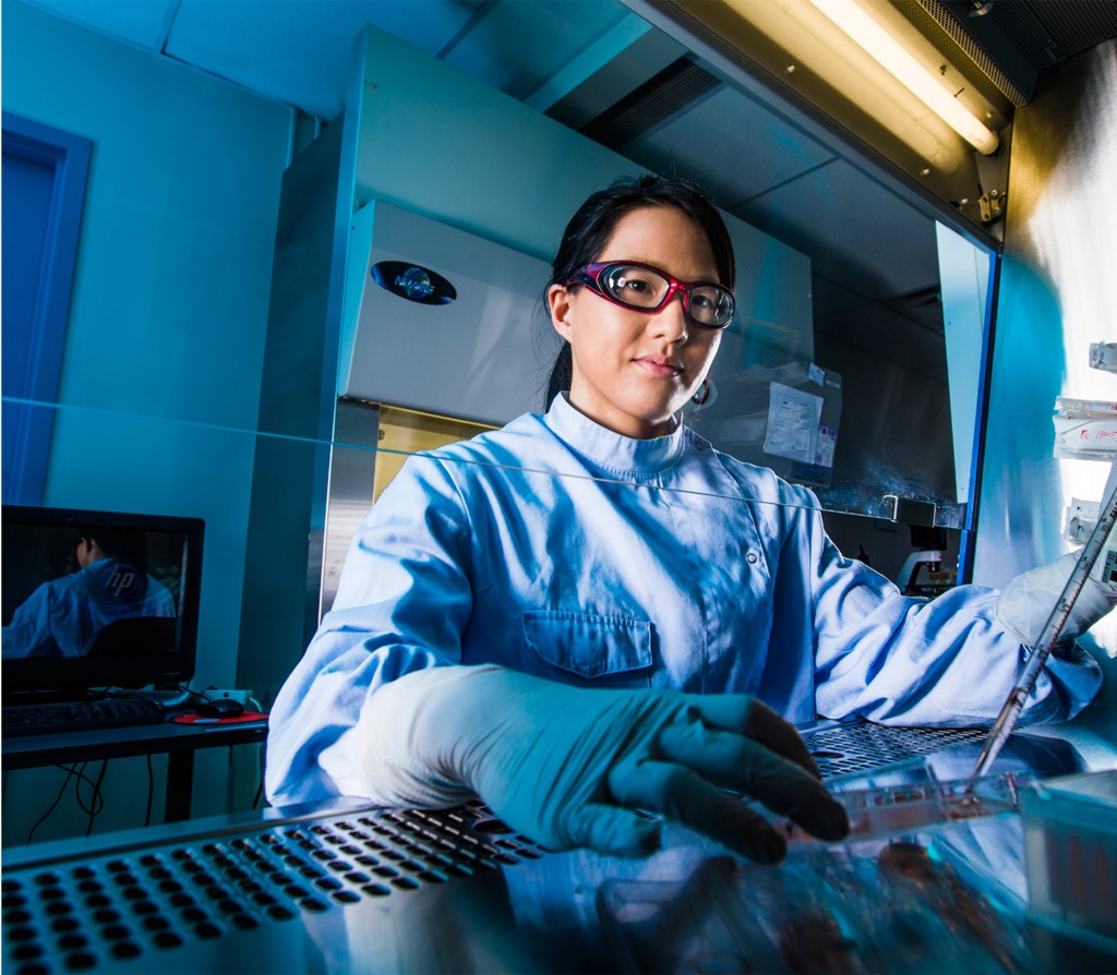 Dr. Lesley Chan, Cell Manufacturing Development Scientist at CCRM, culturing cells\n